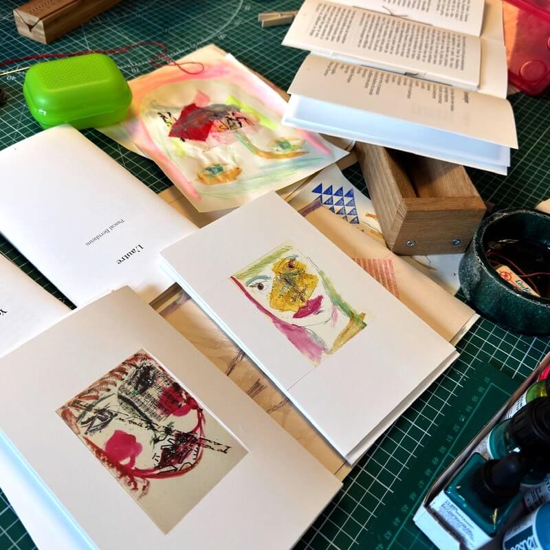 Fabriquez votre livre est un atelier de transmission : pendant cinq jours, vous apprendrez à relier texte et matière, à façonner un livre de A à Z. Mise en page, impression, reliure… chaque geste compte.